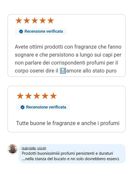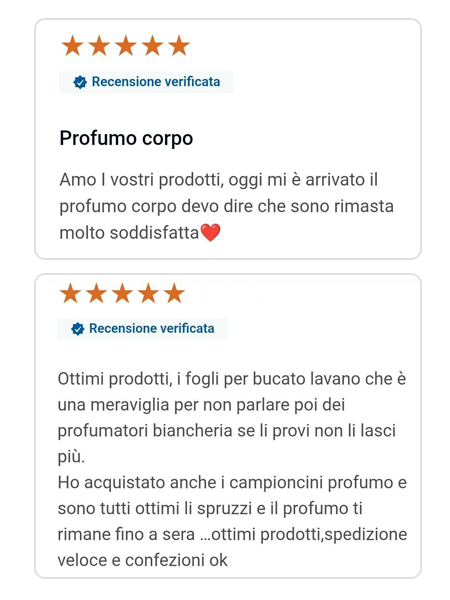 Puntiamo prima di tutto sull’alta qualità. Nello sviluppo delle fragranze prestiamo particolare attenzione all’intensità del profumo e alla sua lunga durata. Offriamo inoltre una consegna rapida entro 24 ore e un servizio clienti efficiente.