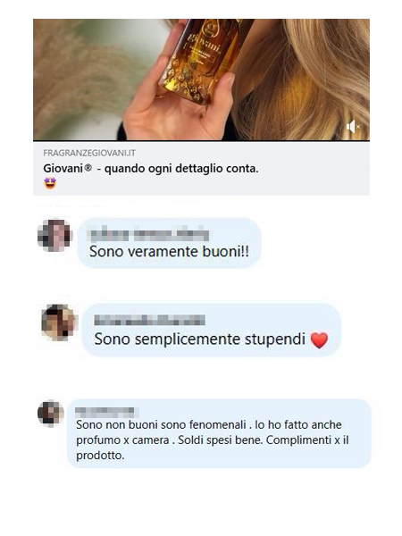 Giovani® è un marchio di profumeria di lusso. Siamo attualmente presenti in 14 Paesi dell’UE e contiamo oltre 1,6 milioni di clienti soddisfatti. I nostri prodotti ricevono valutazioni superiori al 99% nel lungo periodo. Abbiamo ottenuto i riconoscimenti Prodotto dell’Anno 2024 ed eShop dell’Anno 2024.